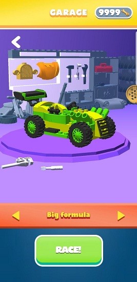 工藝競賽游戲的畫面采用了樂高積木一樣的模式,你需要控制你的小人在起點快速的收集和車輛相同的積木塊給車輛充滿能量,然后出發(fā),在多變的賽道上駕駛你的賽車不斷地躲過關卡中的障礙,最后第一名到達終點就是最后的勝利者。