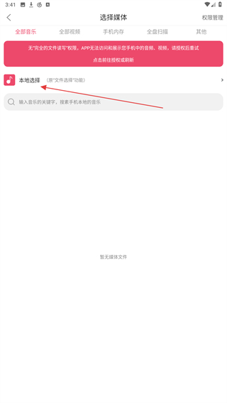 2、進入選擇媒體的頁面內(nèi),用戶需點擊本地選擇的功能按鈕。