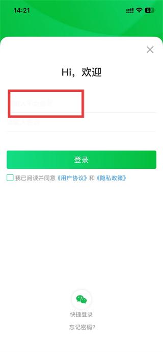 3、點擊上方輸入框,在輸入框內(nèi)填寫用戶名或賬號。