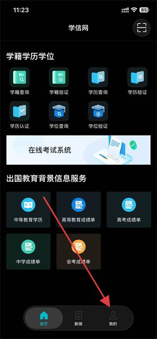 1、打開學(xué)信網(wǎng)APP,點擊底部導(dǎo)航欄我的選項。