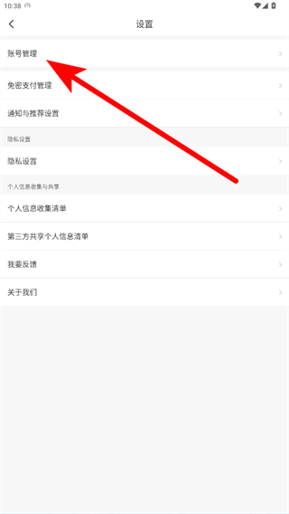 3、在設置界面中,點擊賬號管理選項,進入賬號管理界面。