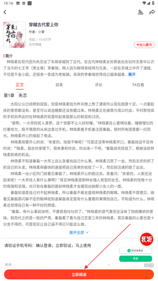 3、進(jìn)入小說詳情頁面內(nèi),點(diǎn)擊正下方立即閱讀的功能按鈕。