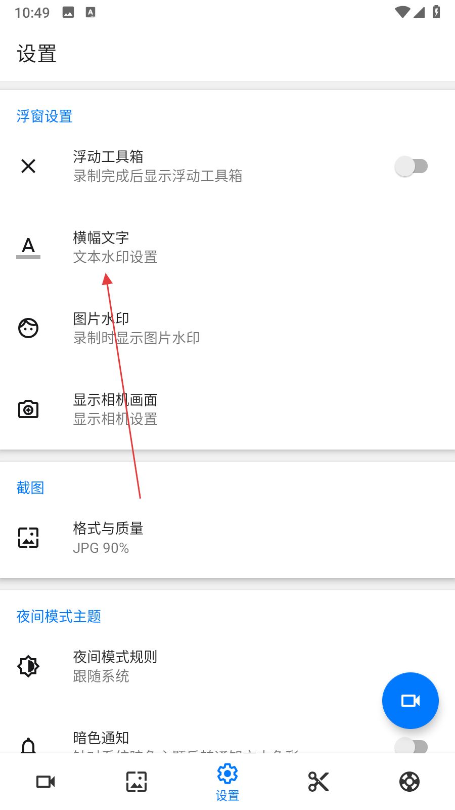 2、在設(shè)置界面中,找到橫幅文字選項(xiàng)并點(diǎn)擊,進(jìn)入文本水印設(shè)置頁面。