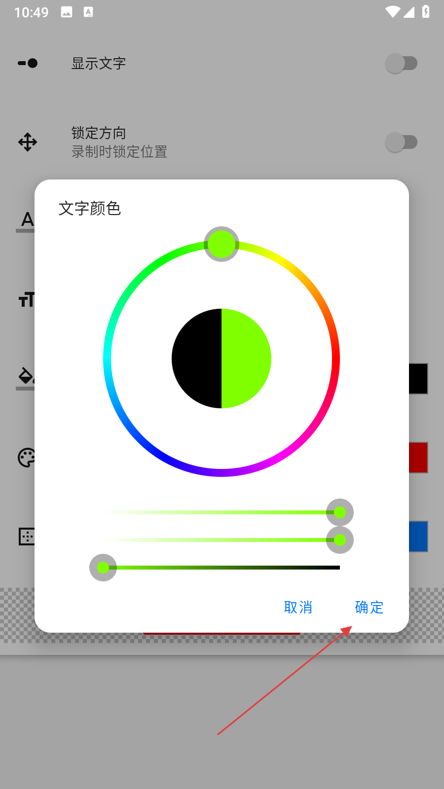 4、在顏色選擇面板中,通過色輪或滑塊選取想要的文本顏色,選取完成后點(diǎn)擊確定按鈕。