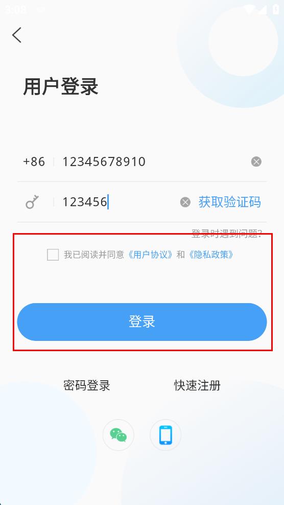 4、勾選“我已閱讀并同意用戶協(xié)議和隱私政策,然后點擊下方的“登錄”按鈕,即可完成登錄操作。