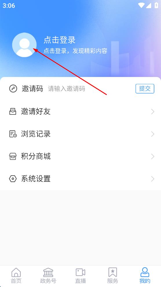2、在個人頁面中,找到上方的“點擊登錄”按鈕,點擊該按鈕,進入用戶登錄頁面。