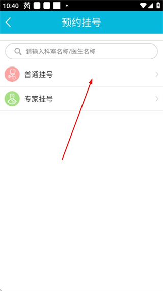 2、在預(yù)約掛號(hào)頁(yè)選擇普通掛號(hào),進(jìn)入科室選擇頁(yè)面。