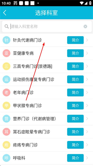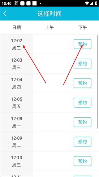 3、在科室列表中選擇目標(biāo)科室,進(jìn)入時(shí)間選擇頁(yè)面。