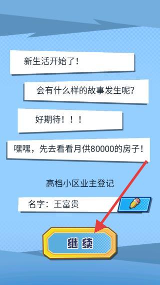 1、畫面呈現(xiàn)了新生活開始的頁面,玩家需要先指定自己的名字再去小區(qū)業(yè)主進(jìn)行登記,填寫后點(diǎn)擊繼續(xù)。