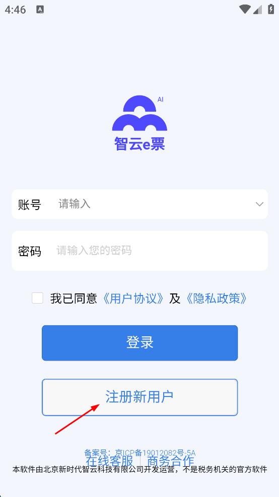 2、在登錄界面,點(diǎn)擊“注冊(cè)新用戶(hù)”選項(xiàng),進(jìn)入注冊(cè)新用戶(hù)頁(yè)面。