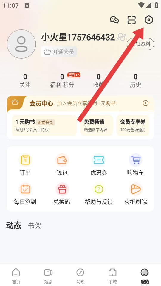 1、在火把知識我的頁面,點擊右上角設置圖標,進入設置界面。