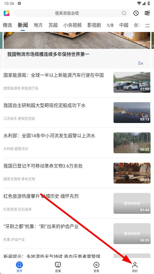 1、啟動中國網(wǎng)絡(luò)電視臺APP,在首頁點擊我的按鈕。
