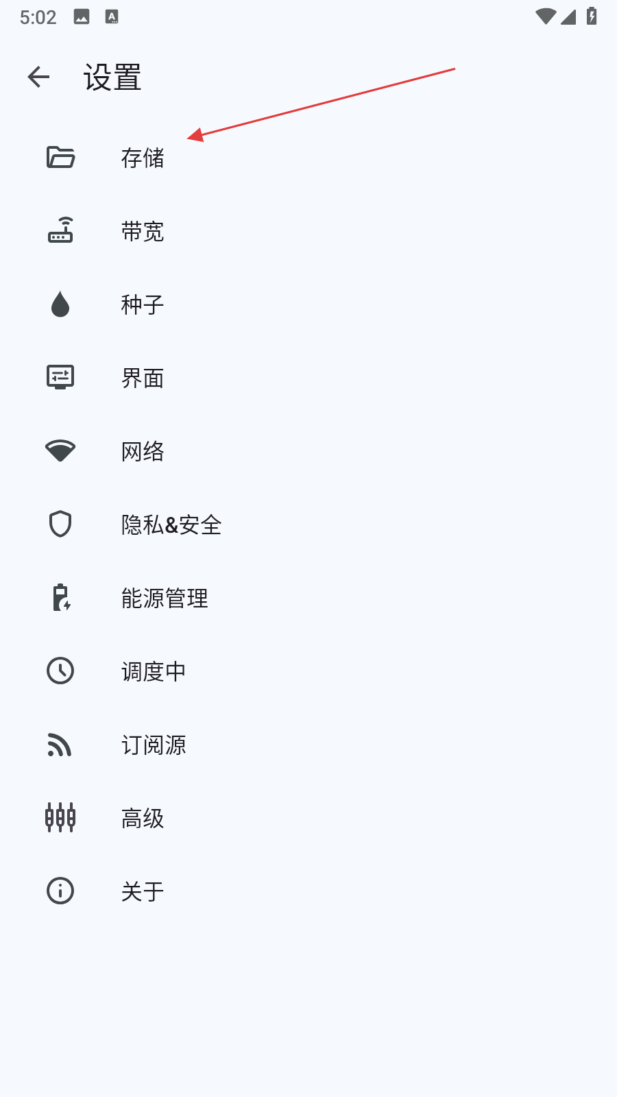 3、在設(shè)置頁(yè)面里,找到并點(diǎn)擊存儲(chǔ)選項(xiàng),進(jìn)入存儲(chǔ)設(shè)置界面,該界面會(huì)顯示當(dāng)前的存儲(chǔ)路徑等信息。