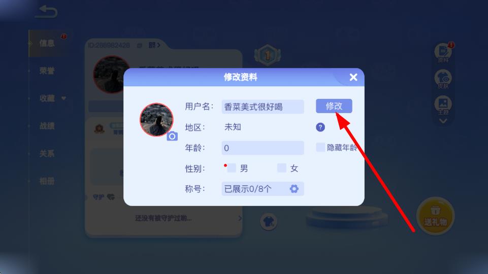 3、在修改資料彈窗中,找到用戶(hù)名一欄,點(diǎn)擊其右側(cè)的修改按鈕,輸入想要更改的新名字,確認(rèn)后即可完成名字修改。