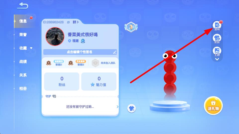 2、在個(gè)人信息界面中,點(diǎn)擊右側(cè)的資料按鈕,進(jìn)入資料相關(guān)設(shè)置界面。