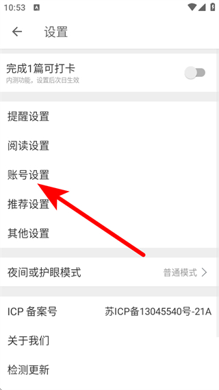 3、在設(shè)置頁(yè)面,點(diǎn)擊賬號(hào)設(shè)置選項(xiàng),進(jìn)入賬號(hào)設(shè)置頁(yè)面。