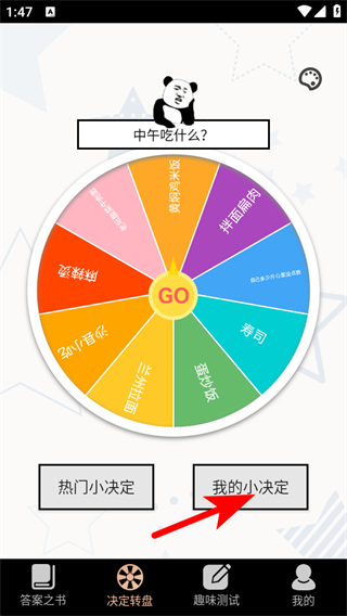 2、在決定轉(zhuǎn)盤頁面,點擊我的小決定選項,進入決定列表界面。
