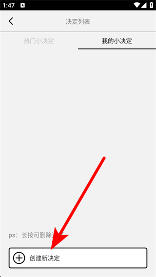 3、在決定列表界面,點擊創(chuàng)建新決定按鈕,進入添加轉(zhuǎn)盤頁面。