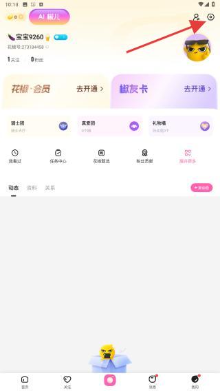 2、進(jìn)入中心頁面內(nèi),點(diǎn)擊個(gè)人頁面右上角的設(shè)置圖標(biāo)。