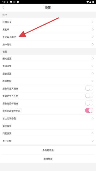 3、進(jìn)入設(shè)置頁面后,點(diǎn)擊青少年模式的選項(xiàng)。