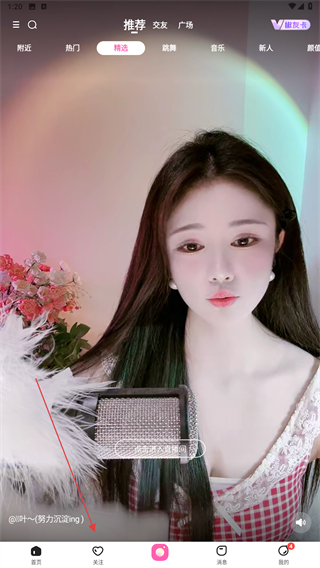1、打開花椒直播的應(yīng)用,點(diǎn)擊導(dǎo)航欄中關(guān)注的按鈕。