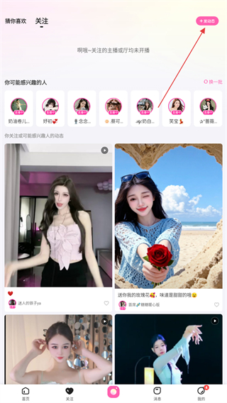 2、進(jìn)入關(guān)注的頁面內(nèi),點(diǎn)擊右側(cè)|+發(fā)動(dòng)態(tài)的按鈕。