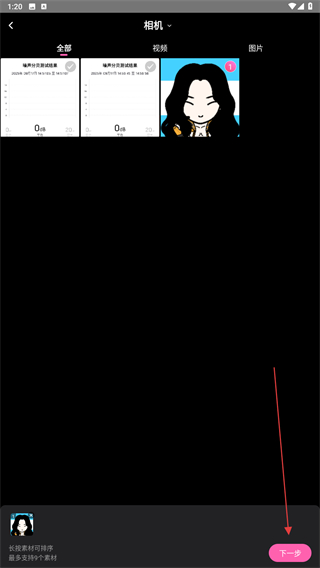 3、進(jìn)入選擇的頁面內(nèi),選擇照片后并點(diǎn)擊下一步的按鈕。