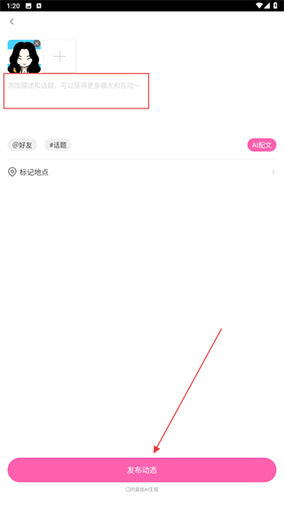 4、輸入標(biāo)題后,點(diǎn)擊下方發(fā)布動(dòng)態(tài)的按鈕即可完成。