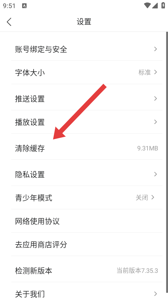 2、在賬號設(shè)置的界面中,找到清除緩存的選項(xiàng)并點(diǎn)擊,觸發(fā)緩存清理的流程。