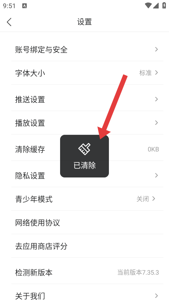 3、需要等待片刻,頁面出現(xiàn)已清除的提示,即表示鳳凰視頻的緩存已成功清理完成。