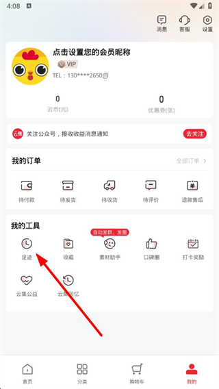 1、打開云集app,點擊底部導航欄中的我的選項。