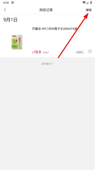 3、在瀏覽記錄頁面,點擊右上角的編輯按鈕。