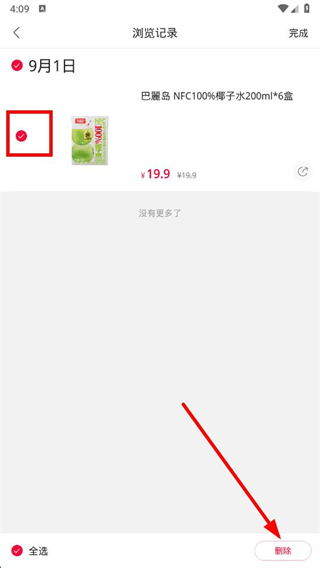 4、勾選需要刪除的瀏覽記錄,或者點擊全選,然后點擊底部的刪除按鈕,即可完成瀏覽記錄的刪除。