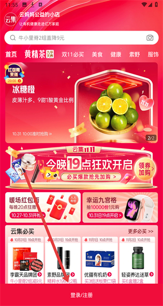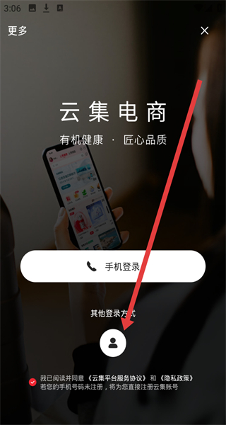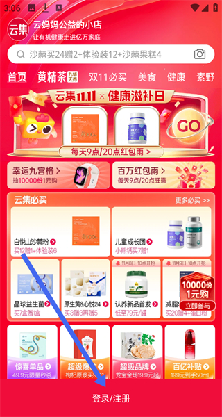 2、在進入到云集App首頁中,可以點擊底部登錄/注冊按鈕,跳轉(zhuǎn)至登錄頁面。