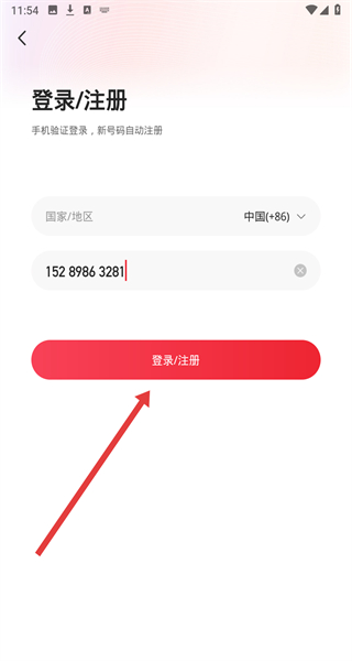 3、在跳轉(zhuǎn)到登錄/注冊頁面,在輸入框填寫要登錄注冊的手機號后,點擊登錄/注冊按鈕進入下一步。