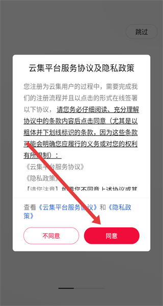 1、在打開云集App后,通過點擊彈窗中的同意按鈕進入。