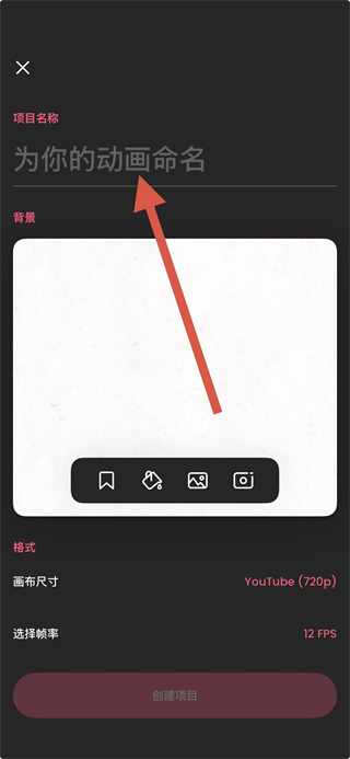 2、進(jìn)入創(chuàng)建項(xiàng)目頁面,在項(xiàng)目名稱處為你的動畫命名,確定名稱內(nèi)容。