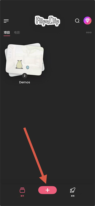 1、打開Flipaclip應(yīng)用,在主界面點(diǎn)擊底部中間的加號按鈕,準(zhǔn)備創(chuàng)建新動畫項(xiàng)目。