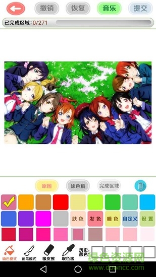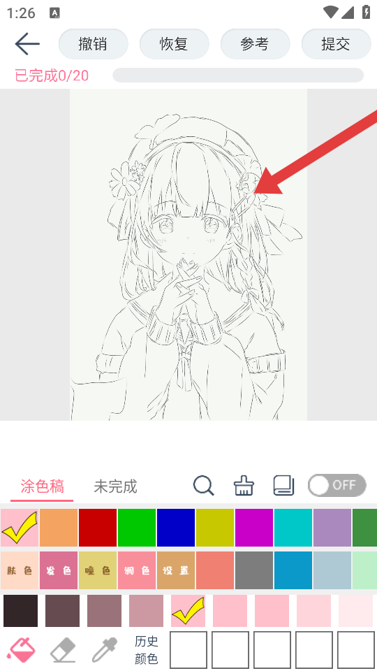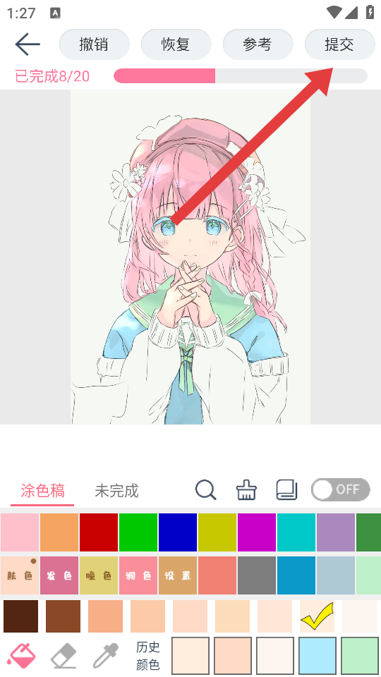 4、完成涂色后,點擊頁面右上角提交按鈕,完成本次涂色作品的提交。