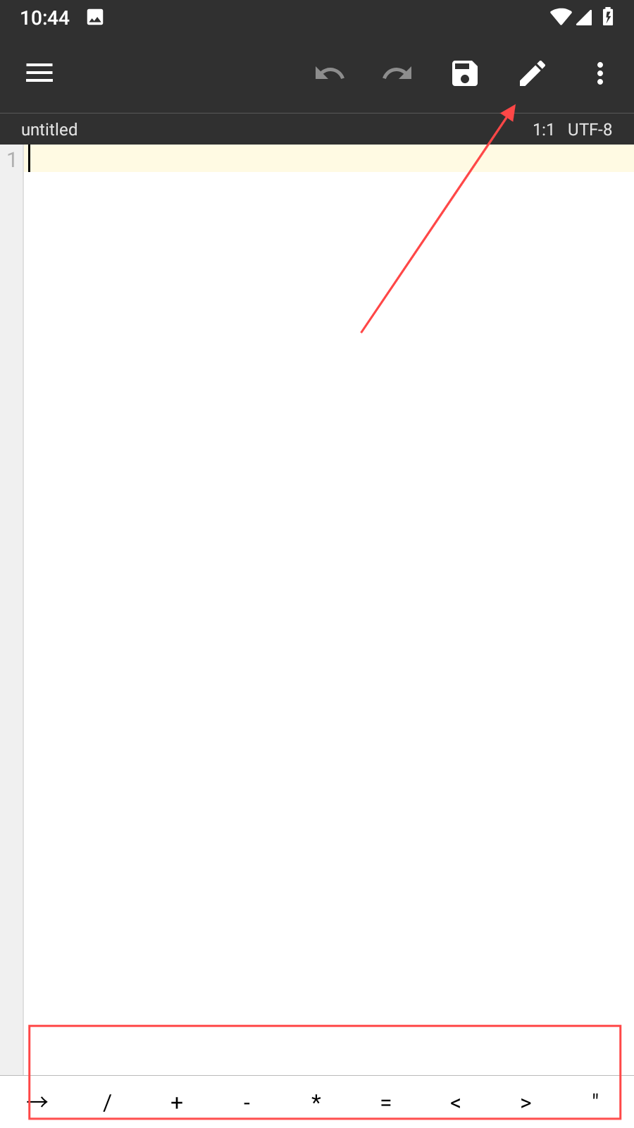 2、在文本編輯器界面中,點(diǎn)擊右上角的鉛筆圖標(biāo)可新建一個(gè)文本文件,之后便可以在下方編輯區(qū)域輸入需要編輯的文本內(nèi)容。