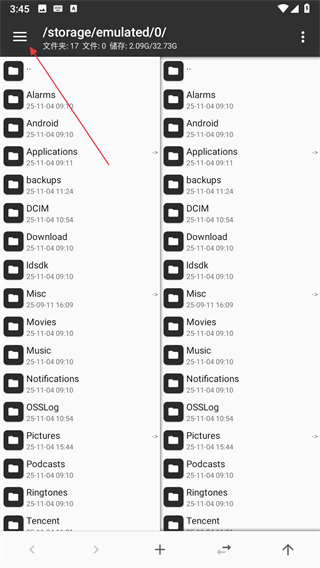 1、打開MT管理器APP,點(diǎn)擊三條橫線菜單圖標(biāo)。