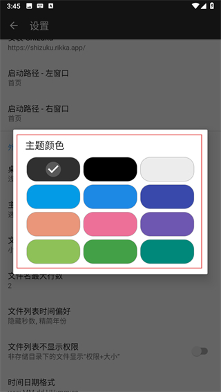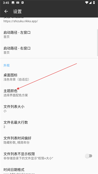 3、在設(shè)置頁面,點(diǎn)擊主題顏色選項(xiàng)。