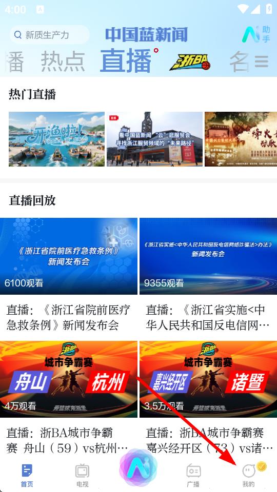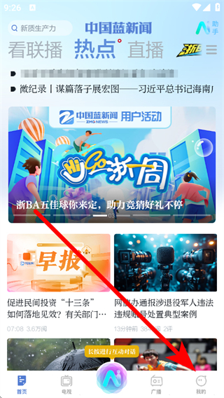 1、打開中國藍新聞APP,點擊右下角我的,進入個人頁面。