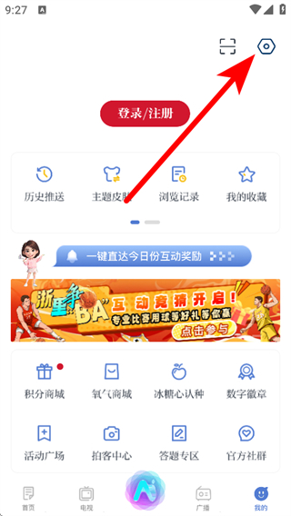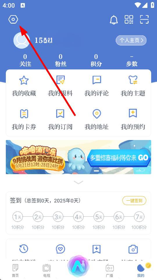 2、在個人頁面中,點擊右上角的設(shè)置圖標(biāo),進入設(shè)置界面。
