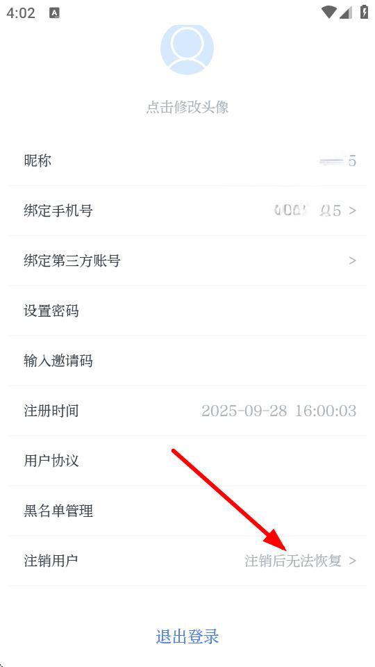 3、在設(shè)置的界面,點擊注銷用戶按鈕,進入注銷說明的頁面。