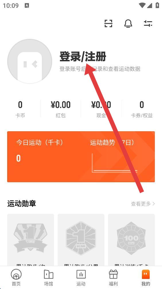 2、在個(gè)人頁(yè)面,點(diǎn)擊登錄/注冊(cè)選項(xiàng)。