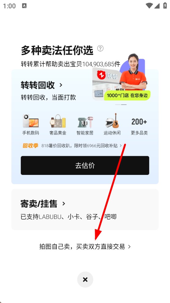 2、進入多種賣法任你選頁面后,點擊拍圖自己賣,買賣雙方直接交易選項。