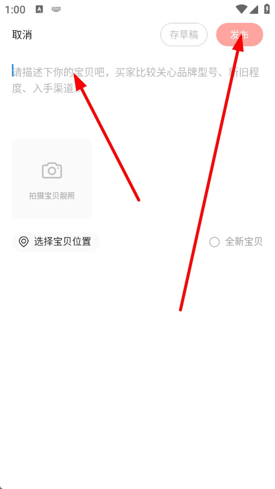 3、進入發(fā)布界面,填寫寶貝的相關信息,點擊發(fā)布按鈕。
