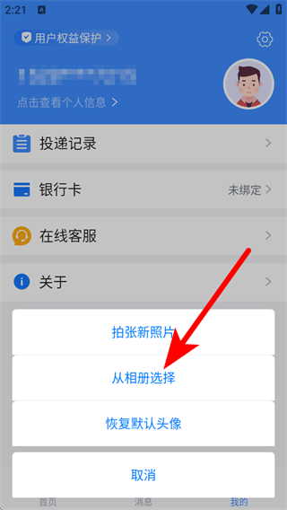 3、在操作選項菜單中,選擇從相冊選擇,選取需要更換的頭像圖片。