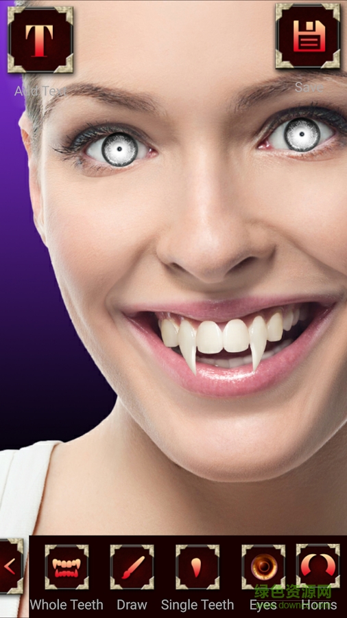 惡作劇相機在你的任何照片中添加吸血鬼裝飾品,包括吸血鬼的牙齒,吸血鬼牙齒單,長角的頭,吸血鬼眼睛和更創(chuàng)造吸血鬼照片。
